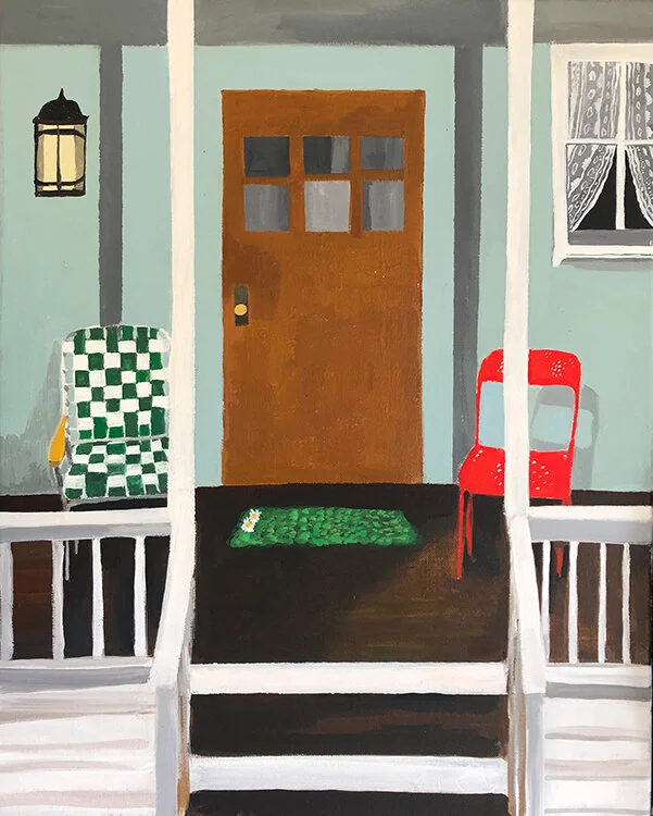 Polly Shindler, Porch Time, (2021). Acrylic on canvas, 20 by 16 inches. Image courtesy of the artist.